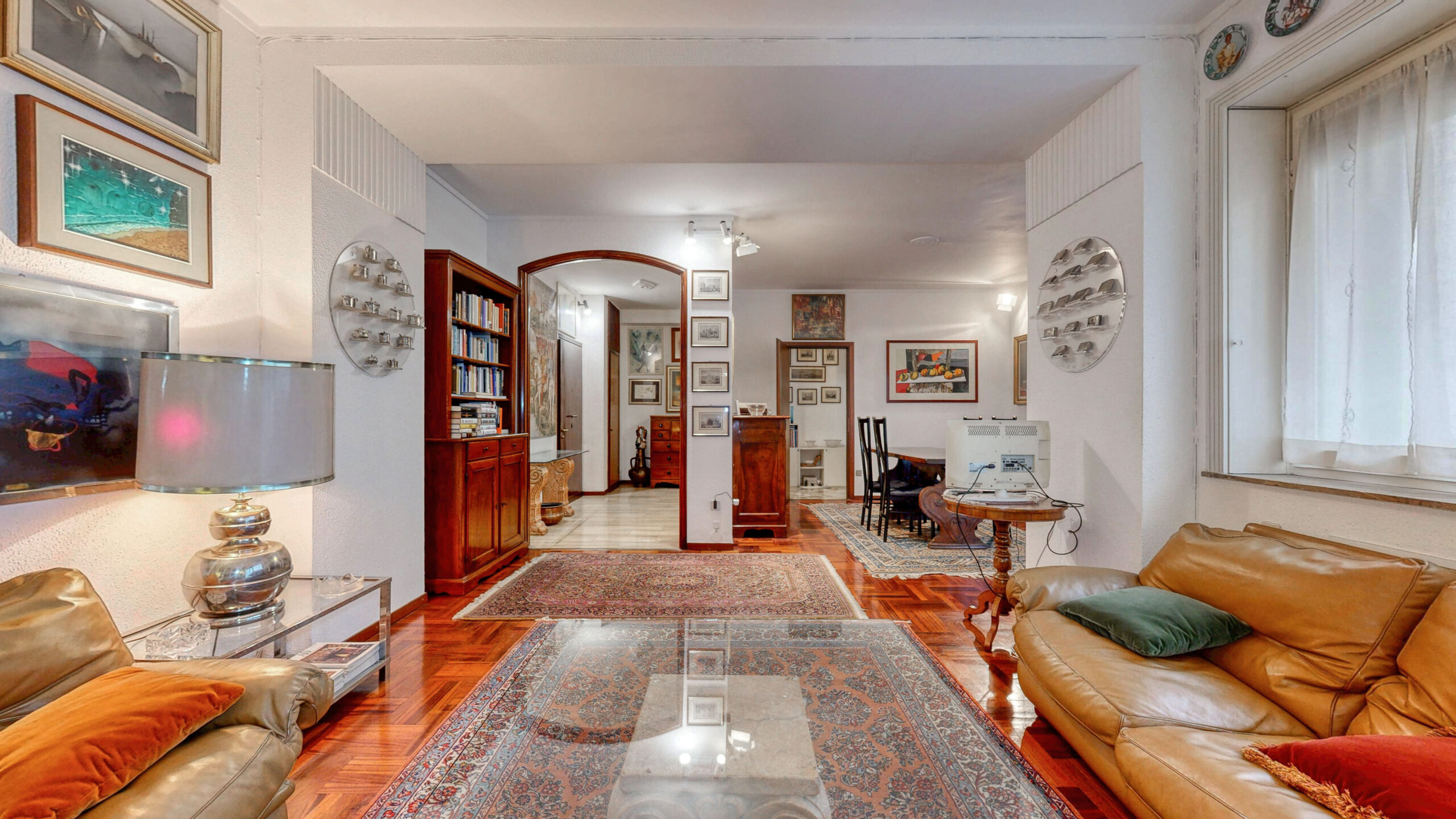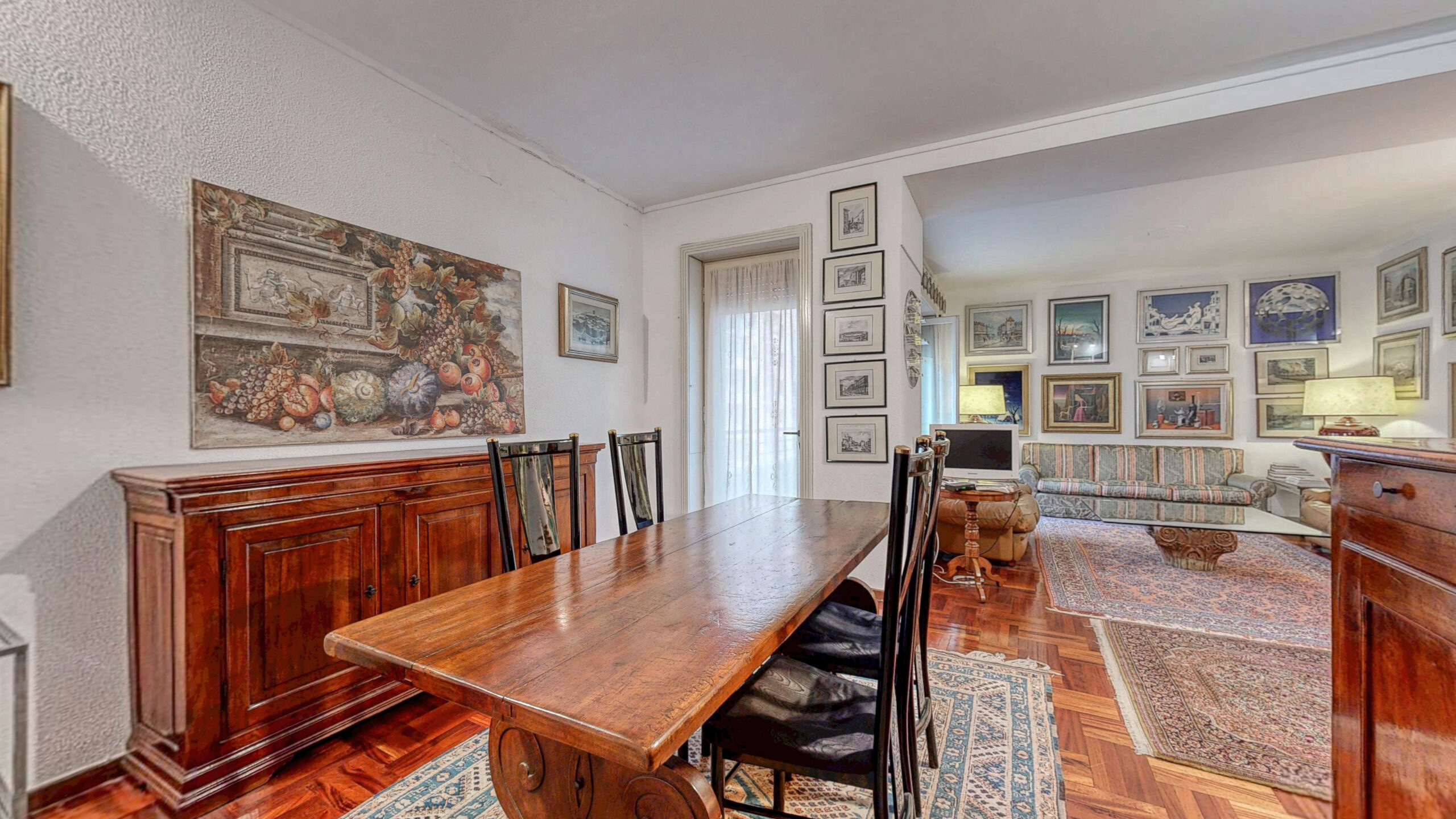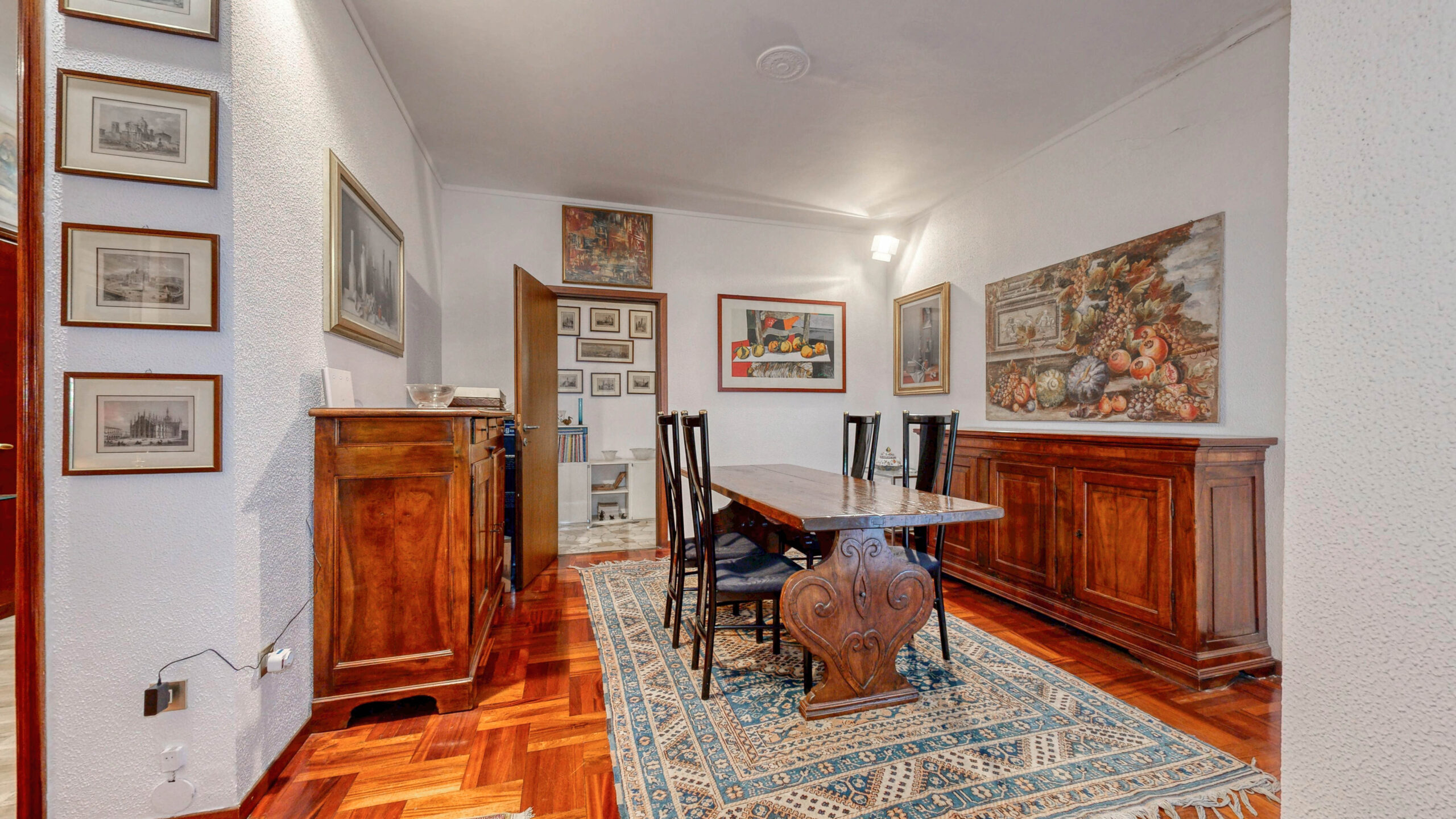 Ulteriori caratteristiche pavimento in parquet e marmo, riscaldamento centralizzato, infissi in legno e porta blindata. Completa l’abitazione la cantina di 3 mq.