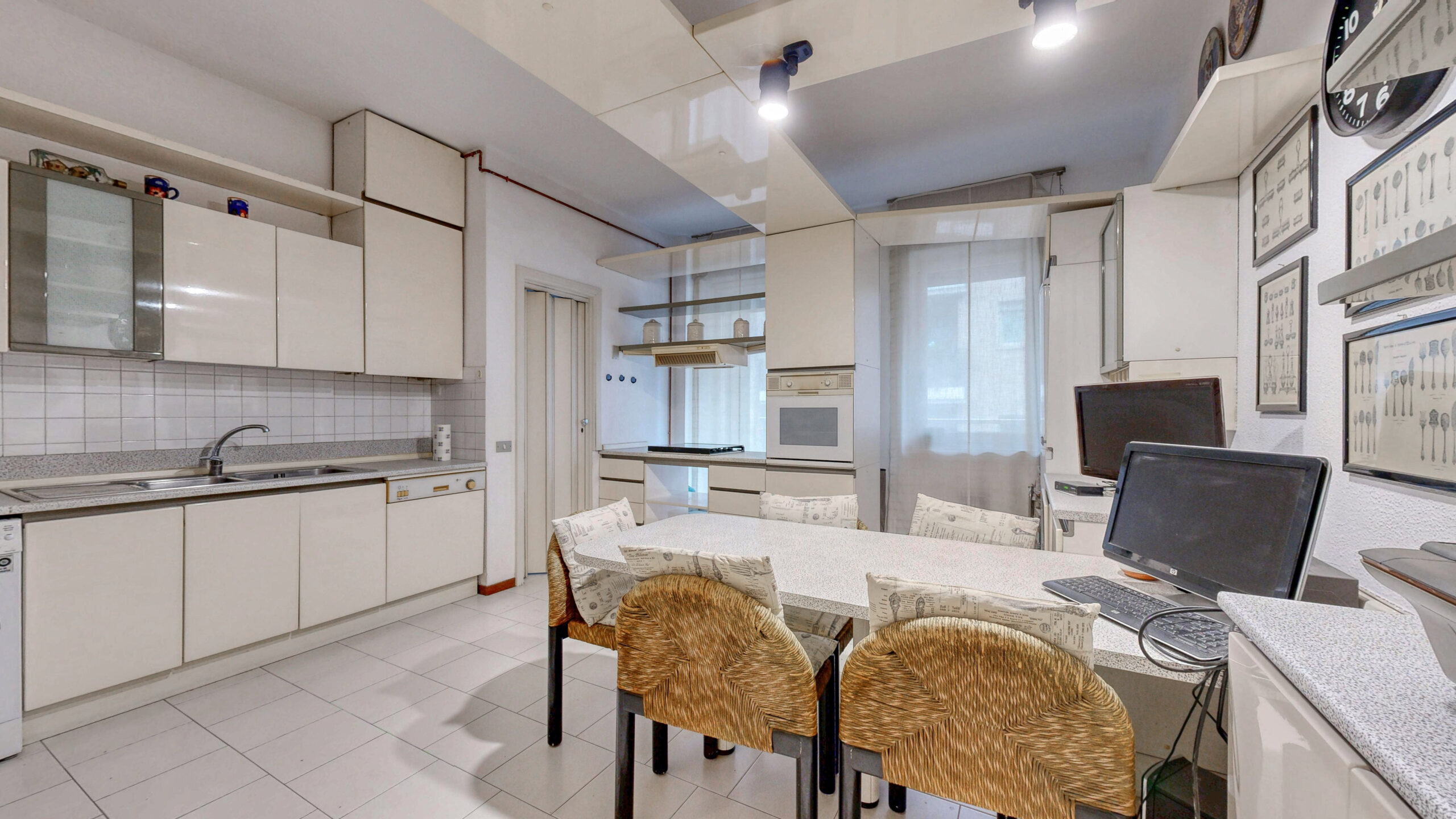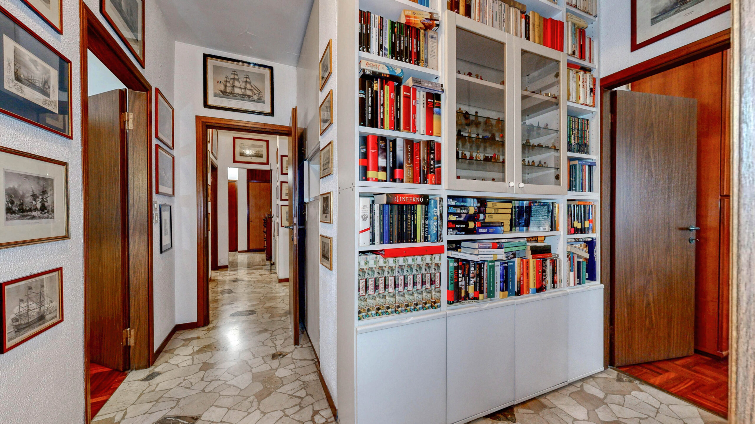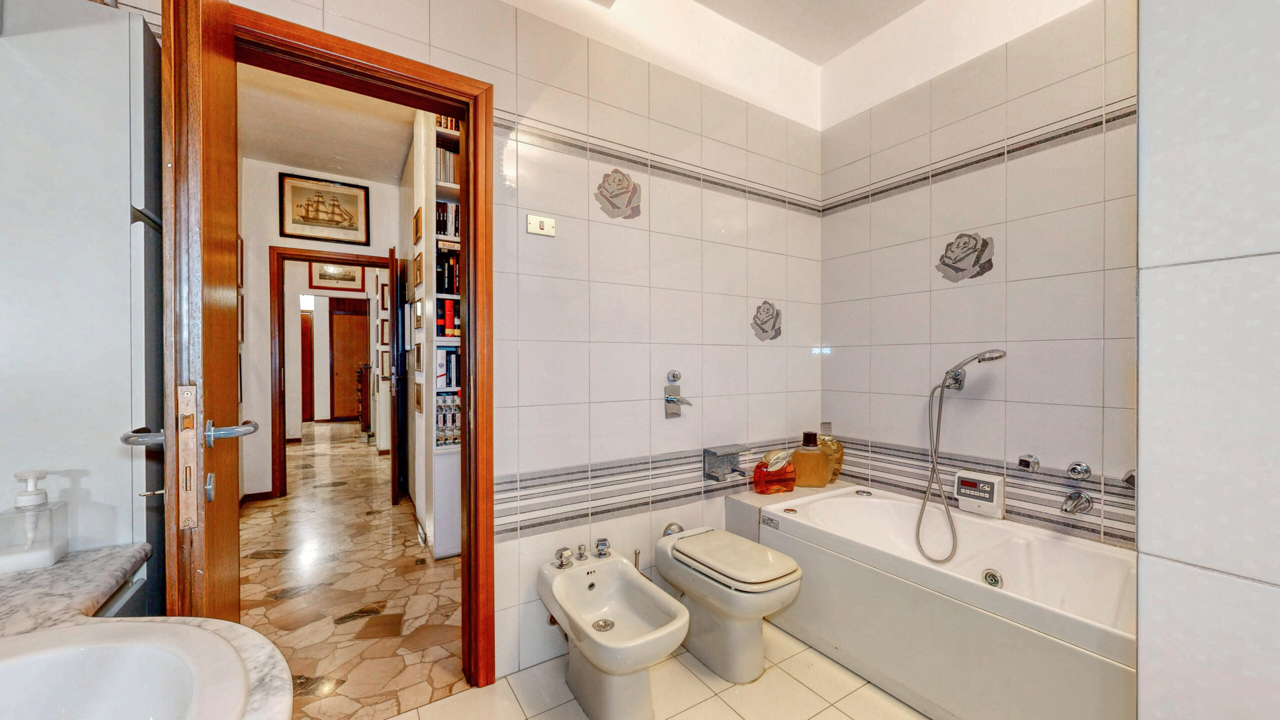 Da questa zona, grazie al corridoio, si accede alla cucina abitabile con bagno finestrato e balconata e, a seguire, alle due camere e al bagno anch’esso finestrato. La camera principale molto ampia, con doppia esposizione e balconata, svela un ambiente confortevole e versatile; la seconda camera è ideale per accogliere sia due letti singoli che un letto matrimoniale; il bagno è finestrato e spazioso.